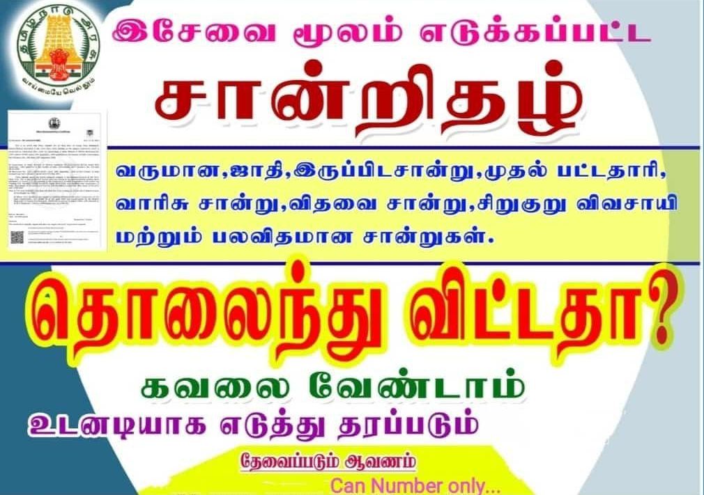 1.Aadhar 2.Ration 3.Lost Cer Xerox copy 4.Photo