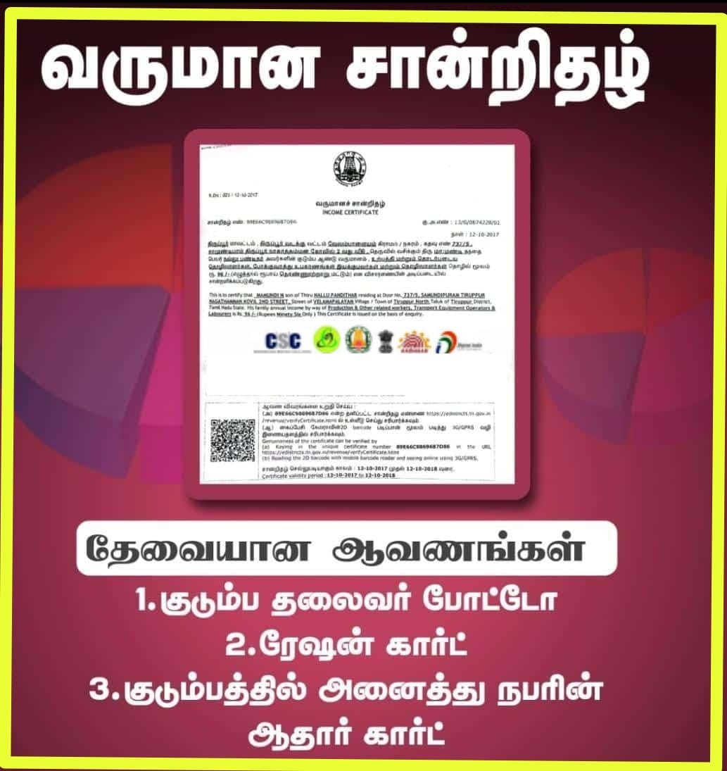 1.Photo 2.Income certificate 3.Aadhar 4.Ration 5.Nativity